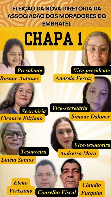 A eleição contou com a inscrição de chapa única, denominada Chapa 1, que foi eleita por unanimidade pelos presentes, demonstrando consenso e união entre os moradores quanto à nova composição da diretoria.