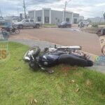 Motociclista fica ferida após acidente entre moto e camionete da prefeitura em Vilhena