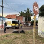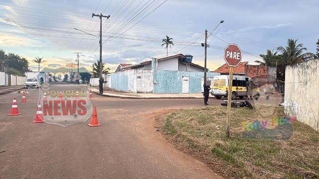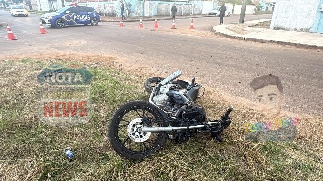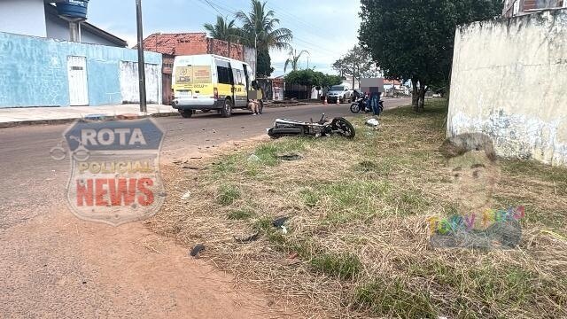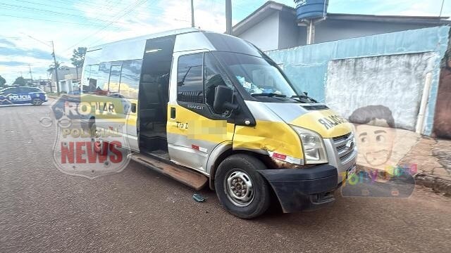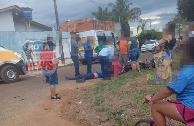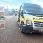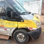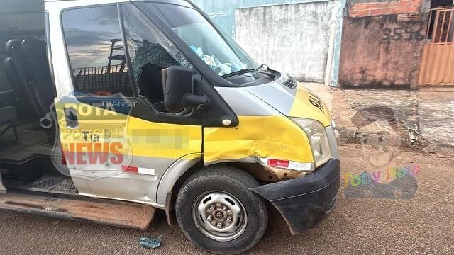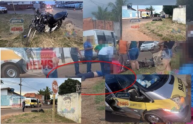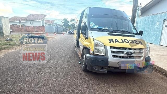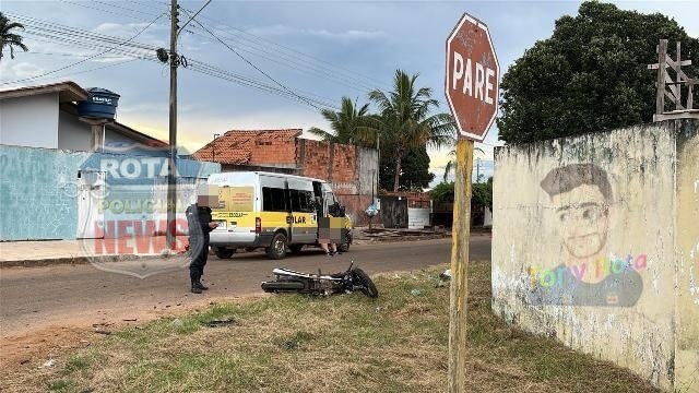 Motociclista fratura perna após colisão com van escolar em cruzamento de Vilhena