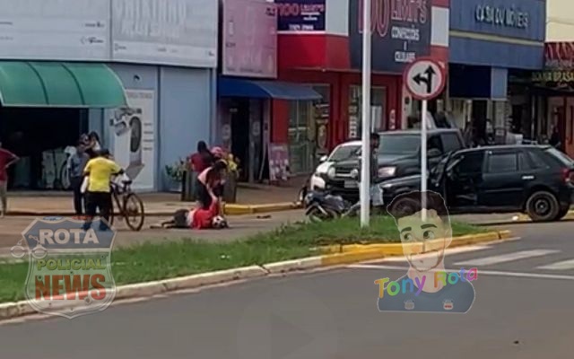 Na tarde desta quarta-feira, 26 de novembro de 2025, um acidente de trânsito deixou uma motociclista ferida no cruzamento da avenida Melvin Jones, no bairro Cristo Rei, em Vilhena.