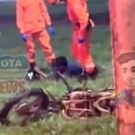 O acidente foi registrado na noite desta terça-feira, 03 de fevereiro de 2026, quase em frente ao supermercado Friron, no bairro Jardim América.