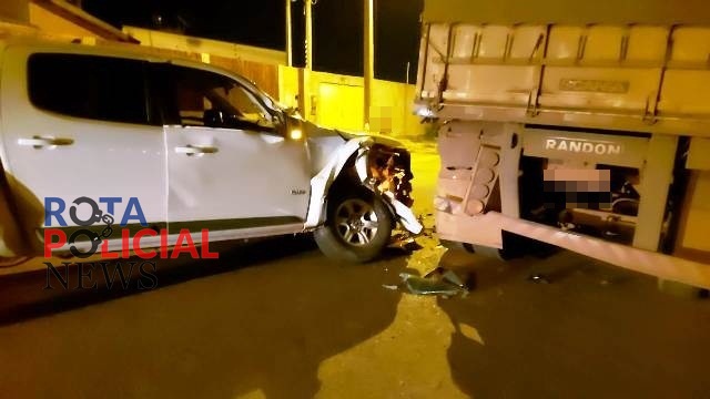 Motorista de camionete atinge traseira de carreta parada no residencial Florença em Vilhena