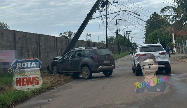Um motorista que conduzia um Renault Duster perdeu o controle da direção e colidiu contra um poste de energia na avenida Liliana Gonzaga.