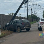 Um motorista que conduzia um Renault Duster perdeu o controle da direção e colidiu contra um poste de energia na avenida Liliana Gonzaga.