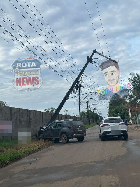 Motorista de Renault Duster colide com poste e foge do local; bairro Bela Vista fica sem energia em Vilhena