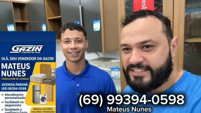 Com o carisma e dedicação que são marca registrada da equipe Gazin, Mateus reforça o compromisso de sempre fazer o melhor por você, oferecendo ofertas imperdíveis, condições facilitadas e aquele atendimento que faz toda a diferença.