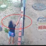 Mulher furta plaquinha de “Cuidado: Cão Bravo” e é flagrada por câmeras no bairro São José, em Vilhena
