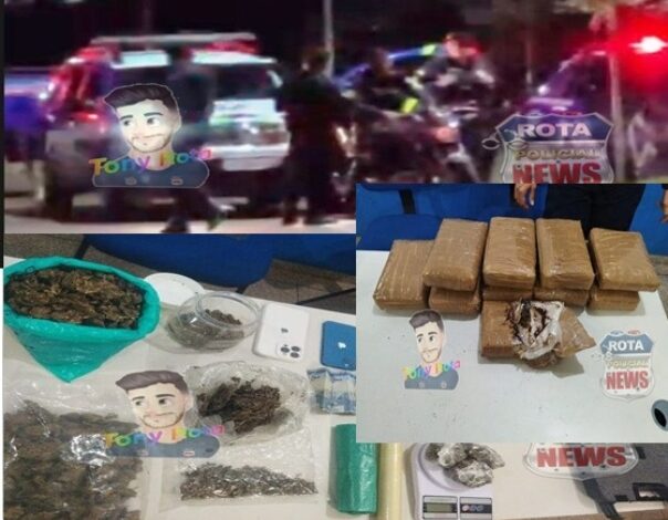 Ainda durante a noite, a equipe da Patrulha Reforço de Polícia Militar desarticulou um ponto de tráfico de drogas, conhecido como “boca de fumo”, na rua 8216, no bairro Barão do Melgaço II. A ação foi resultado de monitoramento prévio de uma residência suspeita.