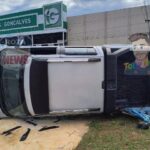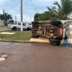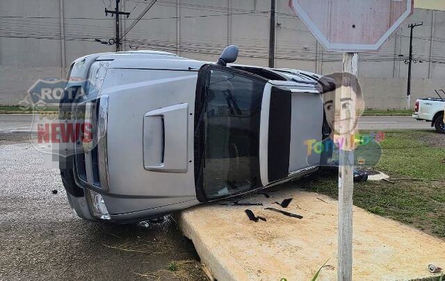 Picape capota após colisão em trecho urbano da BR-174, em Vilhena; ninguém ficou ferido