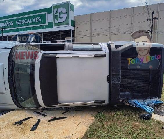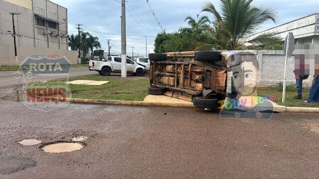 Picape capota após colisão em trecho urbano da BR-174, em Vilhena; ninguém ficou ferido
