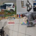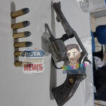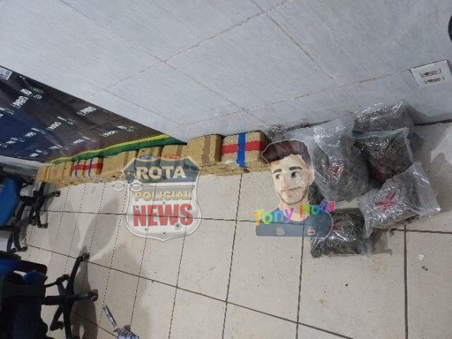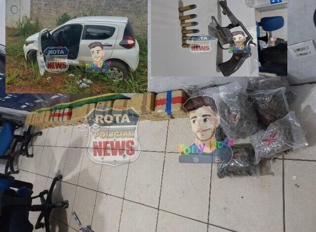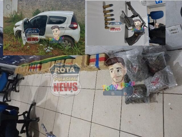 Na varredura do local, os policiais encontraram o revólver da marca Taurus com seis munições, algumas delas picotadas. Já no interior do veículo, foram localizados aproximadamente 68 tabletes de substância análoga à maconha, além de porções de crack, haxixe e cocaína, todas embaladas de forma típica para comercialização.