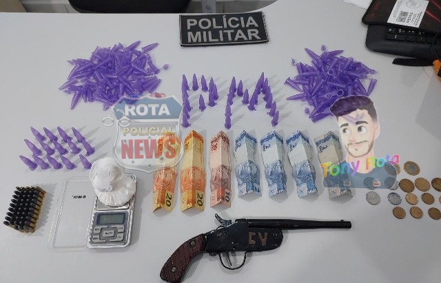 Os policiais militares abordaram, C.A.A.S. de 25 anos em um veículo no perímetro urbano e durante a abordagem, os policiais descobriram que outro indivíduo identificado pelas iniciais M.V.M.S. 20 anos teria dado dinheiro para comprar “pinos” usados para embalar entorpecentes. A casa de M.V.M.S. foi identificada como ponto de armazenamento e venda de entorpecentes.