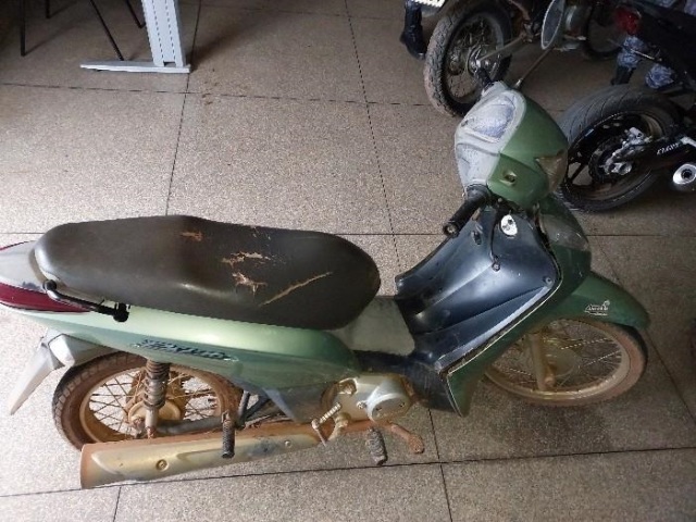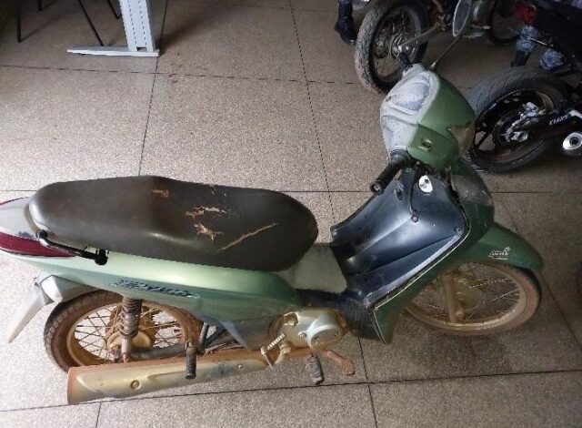 Já no período da tarde, por volta das 16h54, uma guarnição do Patamo localizou uma motoneta em outra casa abandonada, situada na Rua 310, no bairro Parque Industrial Tancredo Neves. Em meio à vegetação, foi encontrada uma Honda Biz 125 ES, de cor verde, placa NCW-4886, escondida entre o mato, em circunstâncias que indicavam tentativa de ocultação.