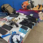 Também foram encontradas as roupas e acessórios utilizados na ação, acondicionados em uma mochila. Diante dos fatos, foram adotadas as medidas legais cabíveis, com a condução dos envolvidos à unidade policial competente para as providências pertinentes.