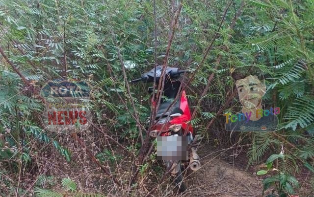 Os militares foram ao local e avistaram a motoneta parcialmente escondida em meio a vegetação.