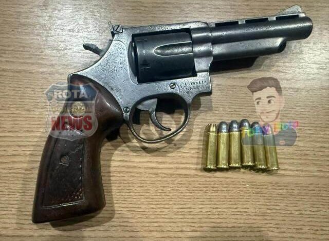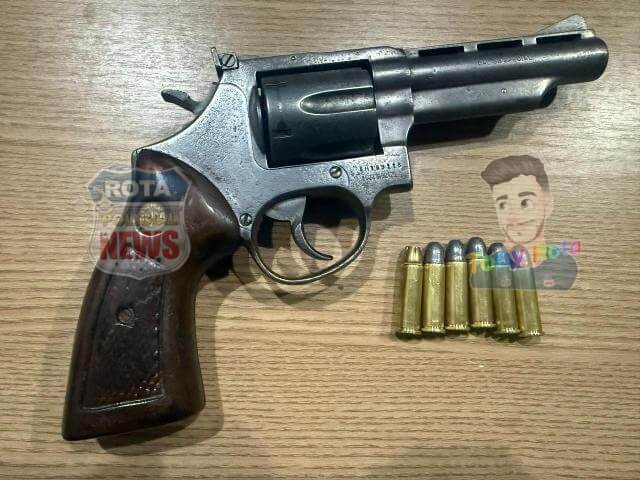 Durante a fiscalização, os policiais encontraram com o detido um revólver de fabricação antiga, possivelmente calibre .38, com cabo de madeira e forte desgaste pelo tempo de uso. Além da arma, também foram apreendidas seis munições intactas, que estavam prontas para uso.