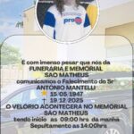 Na noite desta sexta-feira, 19 de dezembro de 2025, o professor aposentado Antônio Mantelli, de 78 anos, foi encontrado sem vida dentro de sua residência, localizada na Rua Marcos da Luz, na região central de Vilhena.