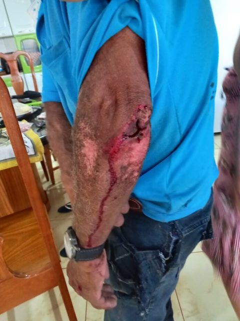 O aposentado Messias Teixeira de Araújo, 67 anos, ficou muito ferido ao cair com sua Honda Biz, ao passar por um novo quebra-molas instalado na BR-174 no cruzamento com a Travessa C no bairro Bela Vista.