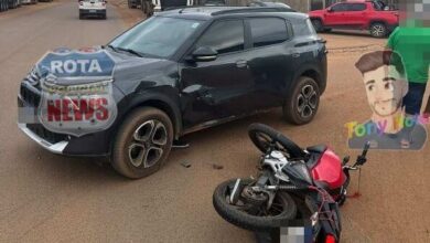 O acidente aconteceu na tarde desta quinta-feira, 28 de Fevereiro, no cruzamento da avenida Paraná com a rua 816, no bairro Alto Alegre, setor 08, em Vilhena.