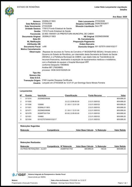 Desta vez, o município de Cabixi foi contemplado com uma emenda parlamentar no valor de R$ 809.899,00, já depositada na conta da Prefeitura, para a aquisição de equipamentos hospitalares.
