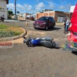A colisão, também entre moto e carro, deixou uma pessoa ferida, que recebeu atendimento no local e foi levada ao hospital pelos bombeiros.