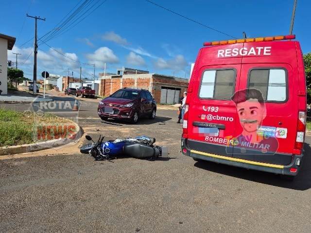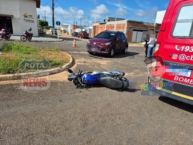 A colisão, também entre moto e carro, deixou uma pessoa ferida, que recebeu atendimento no local e foi levada ao hospital pelos bombeiros.