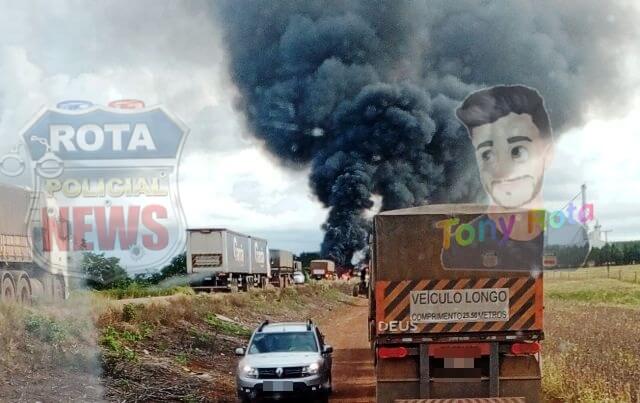 Grave acidente ocorreu no trecho entre Comodoro (MT) e Vilhena (RO); veículos pegaram fogo e rodovia pode ser interditada