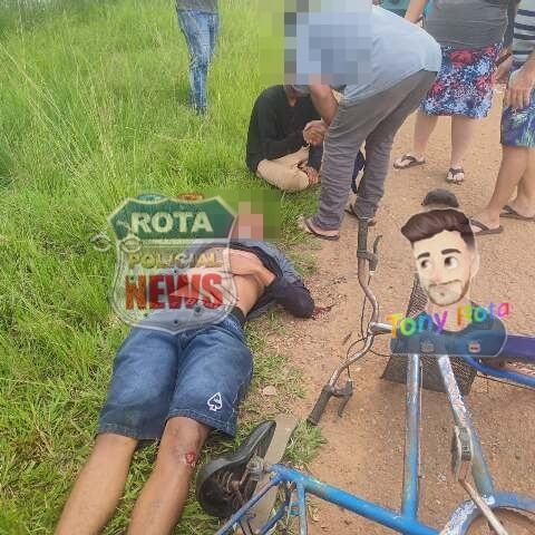 Vítimas estavam de bicicleta quando foram surpreendidas por casal em motocicleta; um dos feridos está em estado grave