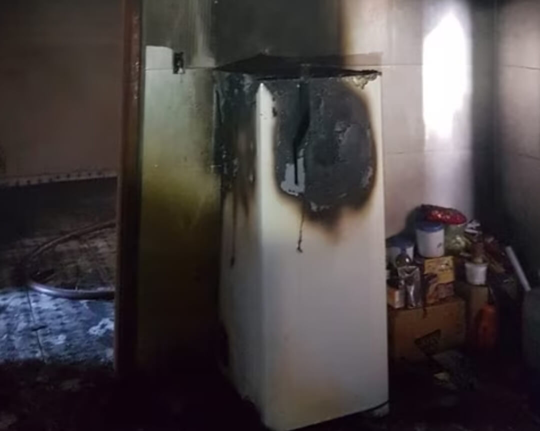 Por sorte, ninguém ficou ferido no incidente, porém os danos materiais na geladeira foram consideráveis.