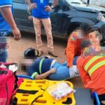 Com o impacto, a motociclista sofreu escoriações e suspeita de fratura em uma das pernas. Ela recebeu atendimento no local e foi encaminhada ao pronto-socorro do Hospital Regional por uma equipe do Corpo de Bombeiros.