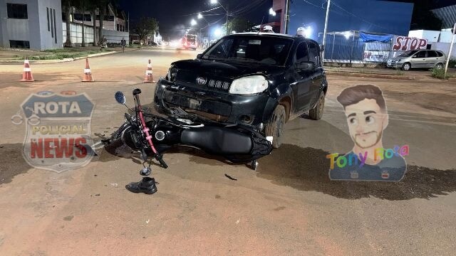 No final da tarde desta quinta-feira, 16 de outubro, um acidente envolvendo um carro e uma motocicleta foi registrado no cruzamento da avenida Rondônia com a rua Ceará, no bairro Parque Industrial Novo Tempo, no setor 19, em Vilhena.