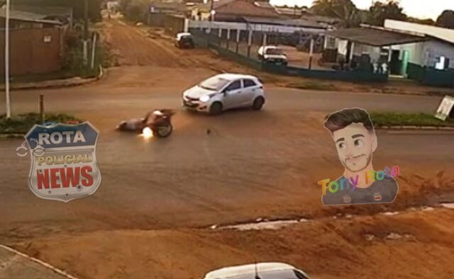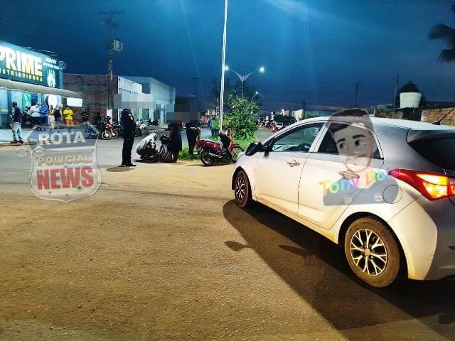 Na noite desta quinta-feira, 24 de setembro, um acidente de trânsito foi registrado na avenida Melvin Jones, em Vilhena, envolvendo um Hyundai HB20 e uma motoneta Honda Biz.