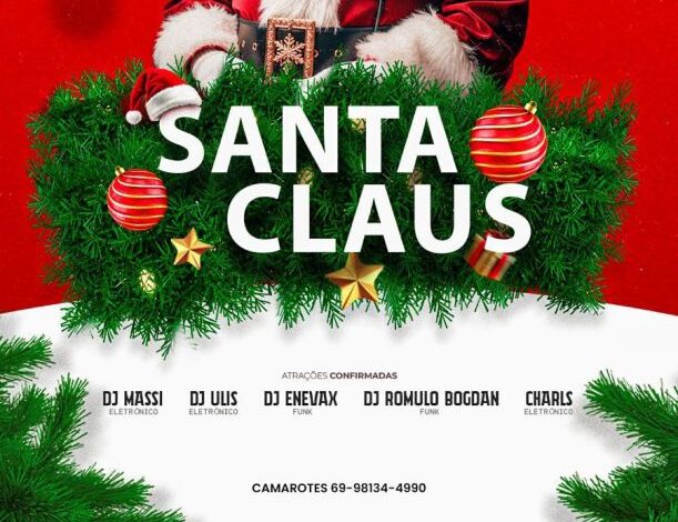 A cidade de Vilhena já vive a expectativa para um dos eventos mais aguardados do fim de ano. No dia 24 de dezembro, a Diip Bar receberá a festa “Santa Claus”, que contará com dois ambientes e uma programação especial para celebrar a noite de Natal com muita música eletrônica e funk.